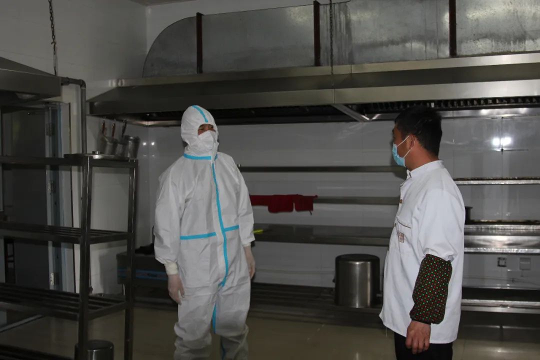 检查期间,孙宇新对密切学院与市防指之间的沟通协调提出要求,陆永光身着防护服走进食堂后厨检查指导。